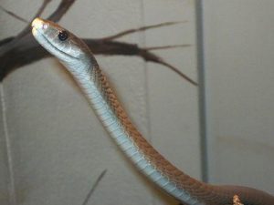 Ce serait un « dendroaspis polylepis ». Autrement dit, un mamba. Euh ! C’est pas sympathique comme bestiole.